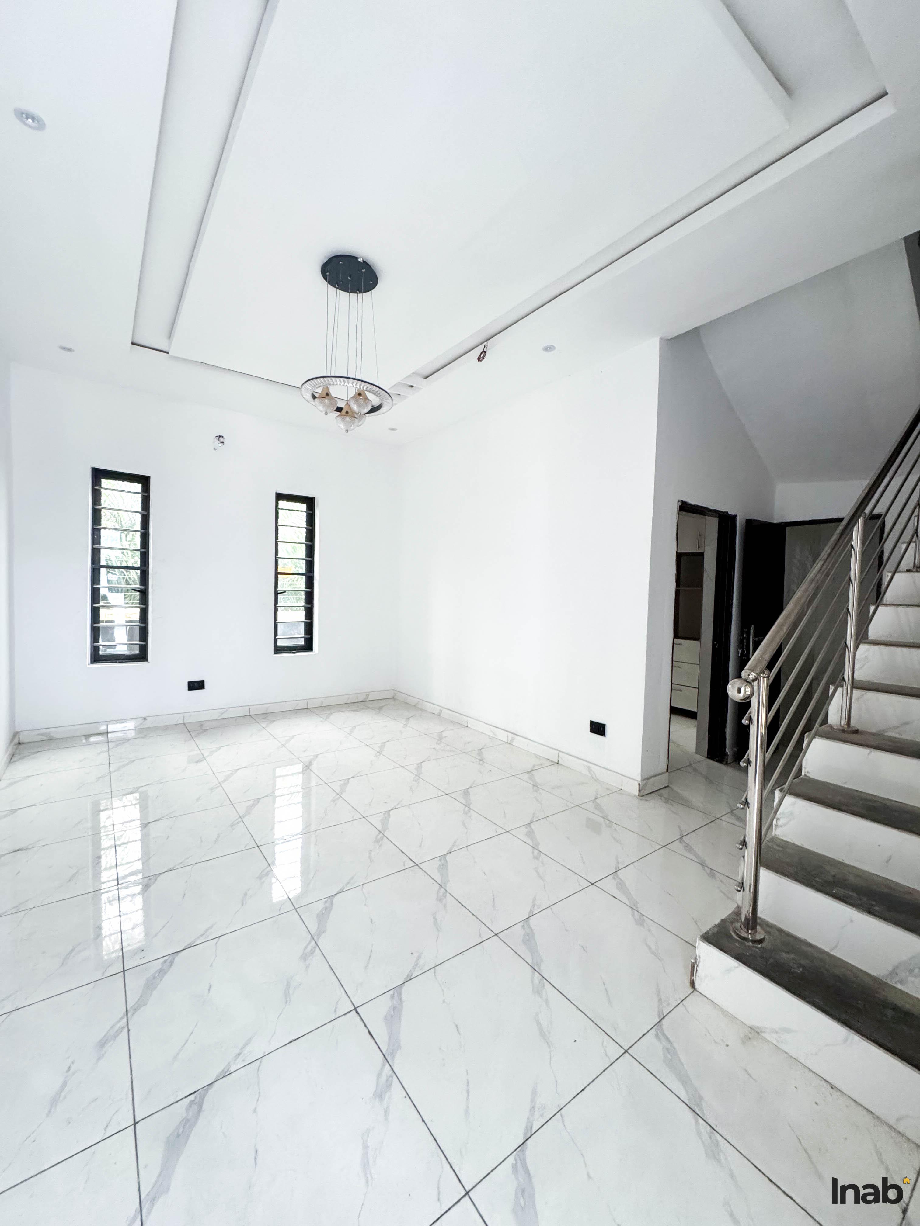 Location: Ajah,Price: N100 Million Naira Features:- Contemporary Design- All Rooms Ensuite- Shower Cubicle- Family Lounge- Chandeliers- Concrete Floor- Water Heaters- Fitted Closets- Fully Fitted Kitchen (Heat Extractor, Microwave/Oven, In-Built Gas Cooker, Double Door Refrigerator)