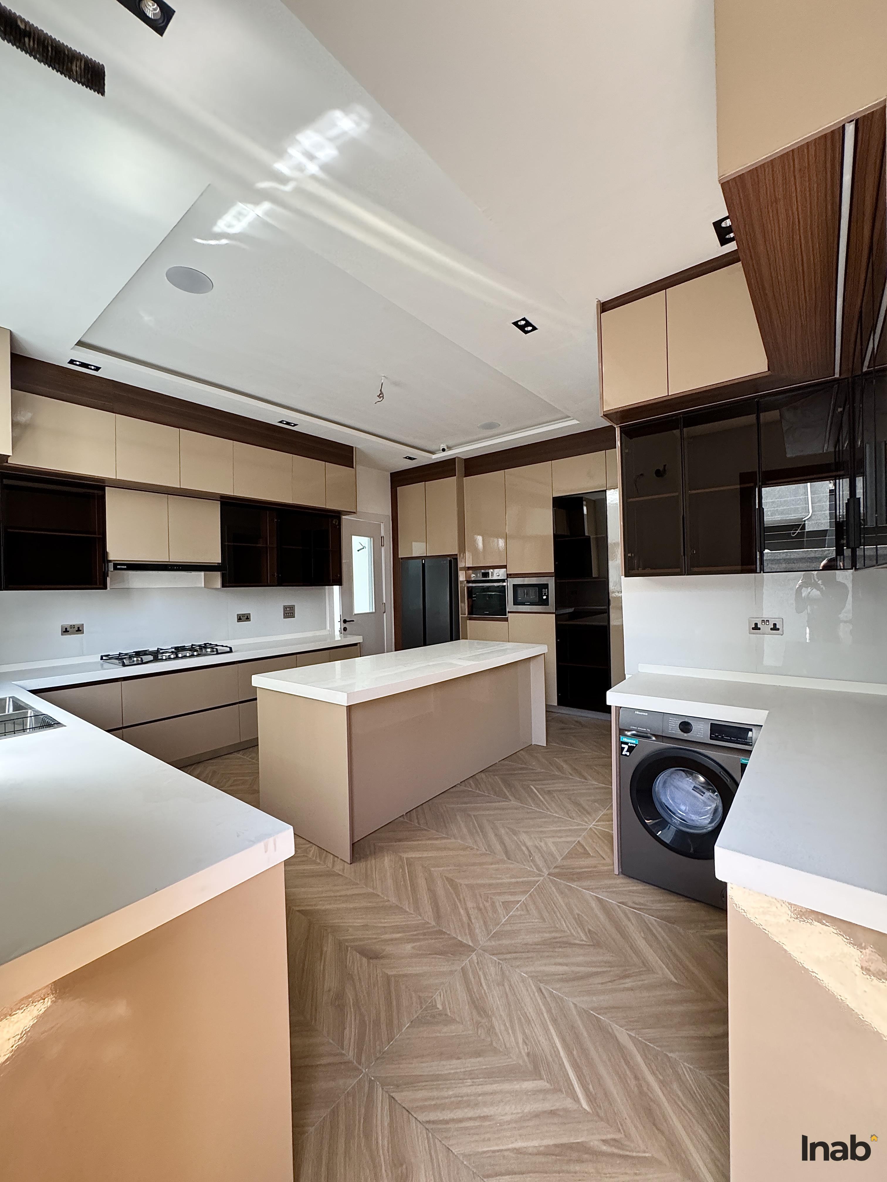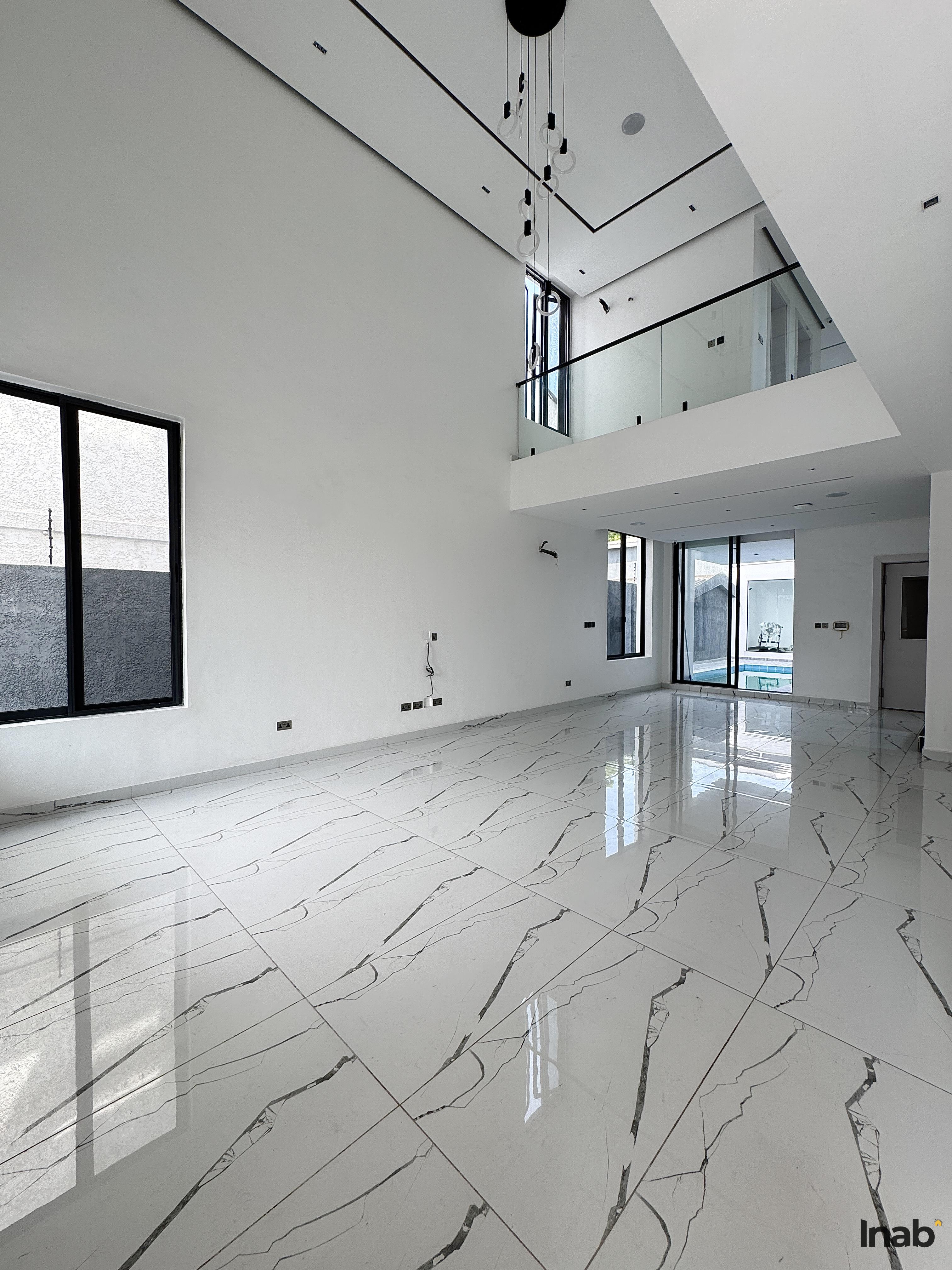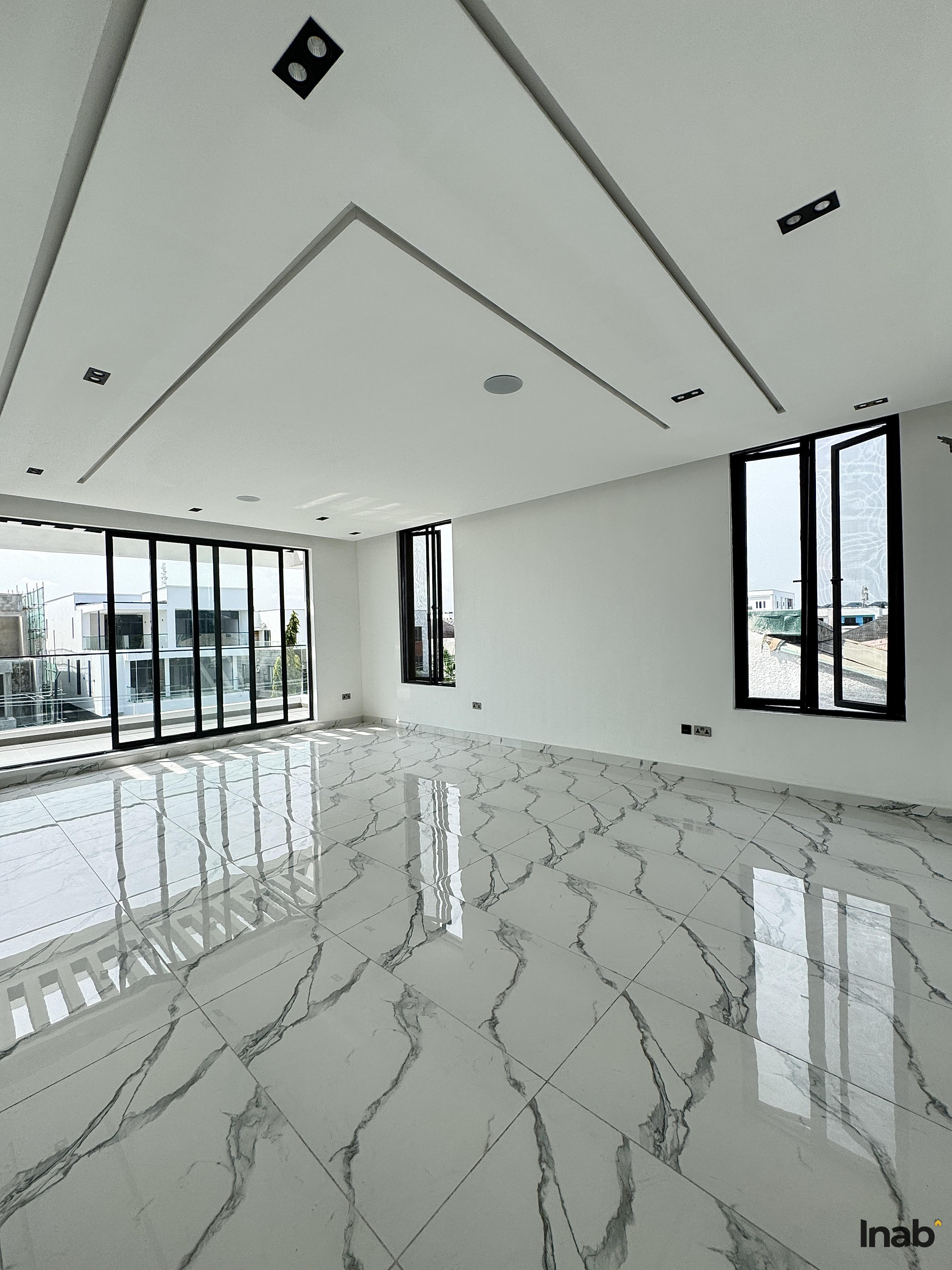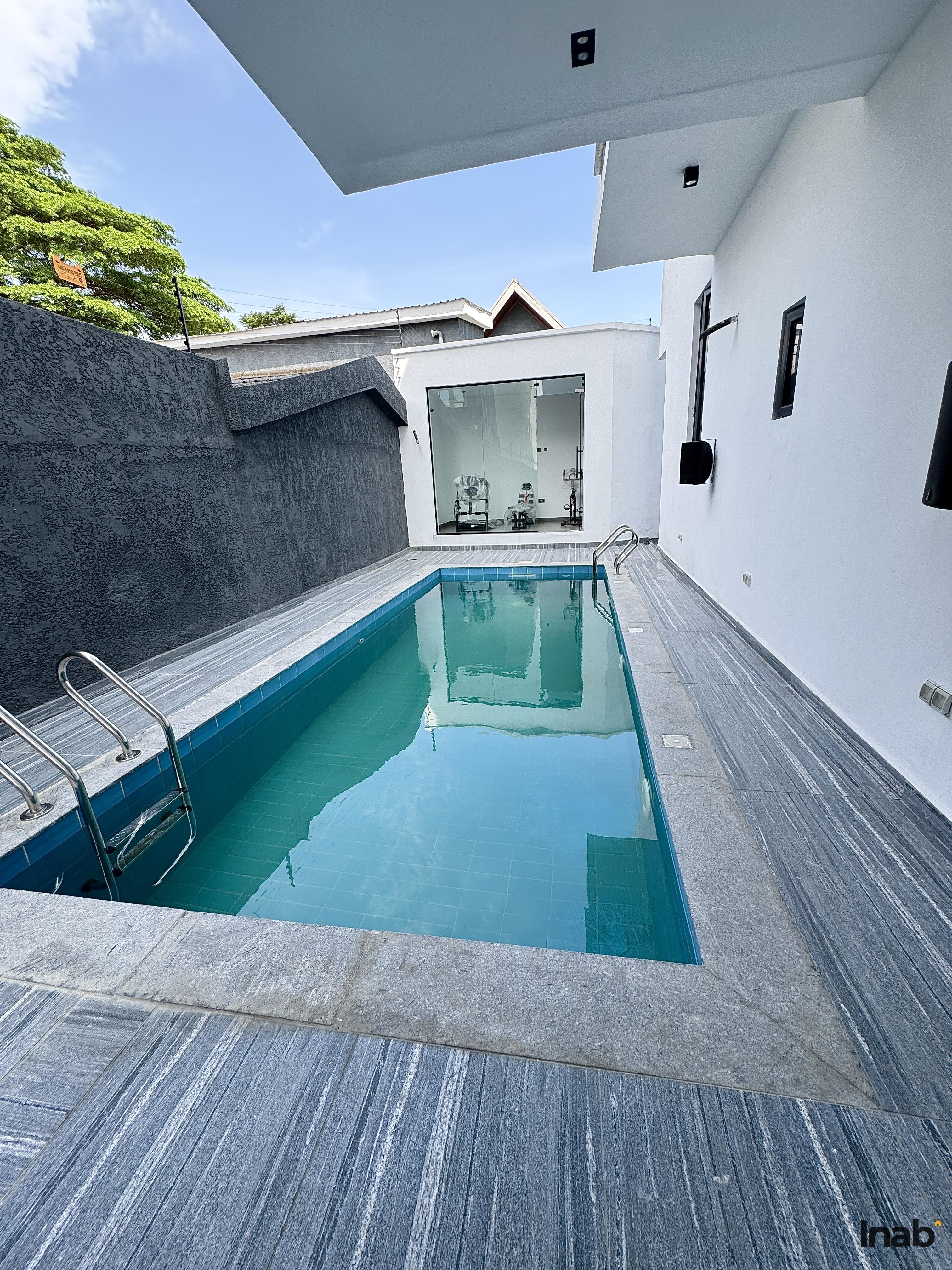 Features:. Sits on 2 floors. Massive living area. Swimming pool. Gym. Cinema. Rooftop terrace. Fully fitted kitchen. Chandeliers. Ensuite rooms. Serene environment. Walk-in closet. Balcony. Fitted closets . 24/7 security . Water heaters. Shower cubicle . Ample compound space. BQ